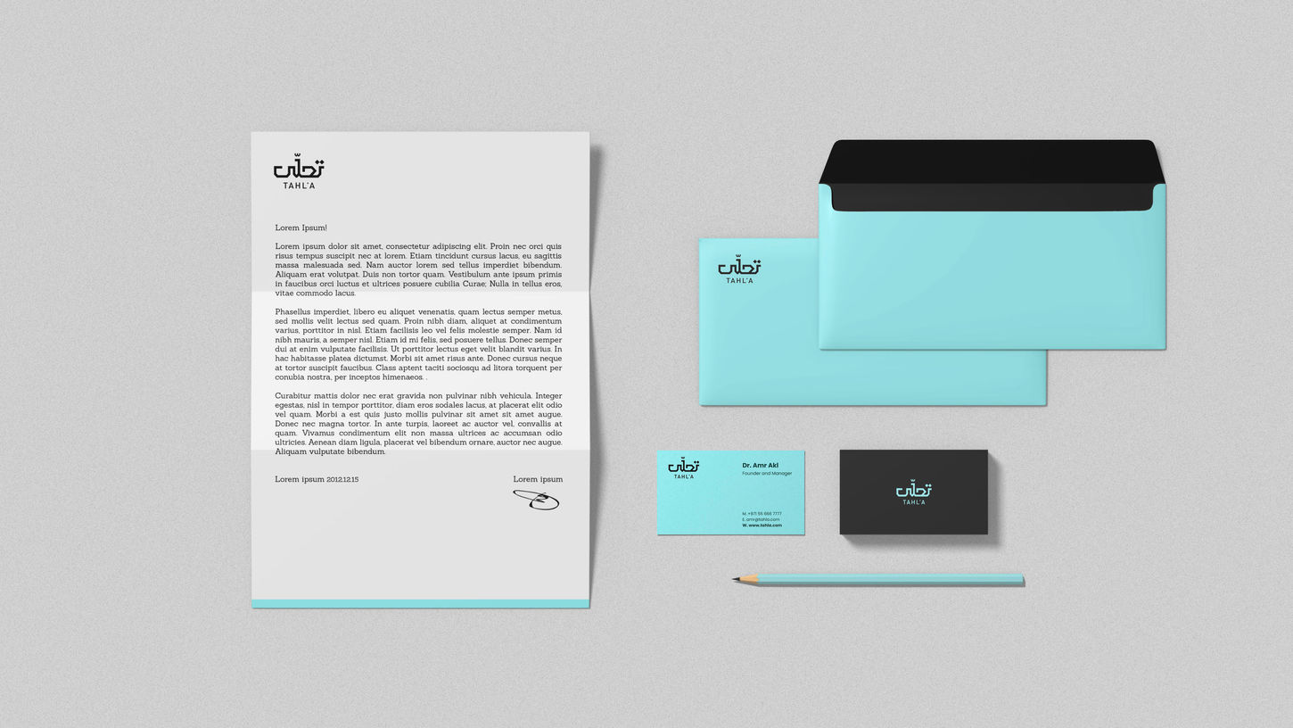 Tahl’a’s branding identity is rooted in cultural authenticity and contemporary sophistication. The brand’s name, derived from Arabic, is rendered in a bespoke Kufi Modern calligraphic style—a harmonious fusion of traditional Arabic script and minimalist design. Each stroke of the handcrafted typography reflects the Arab spirit while embodying a refined, modern aesthetic.
